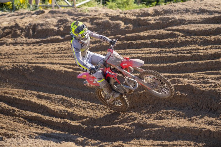 Team HRC’s Tim Gajser put in another display of controlled speed, on a tricky Maggiora track to win both motos of t...