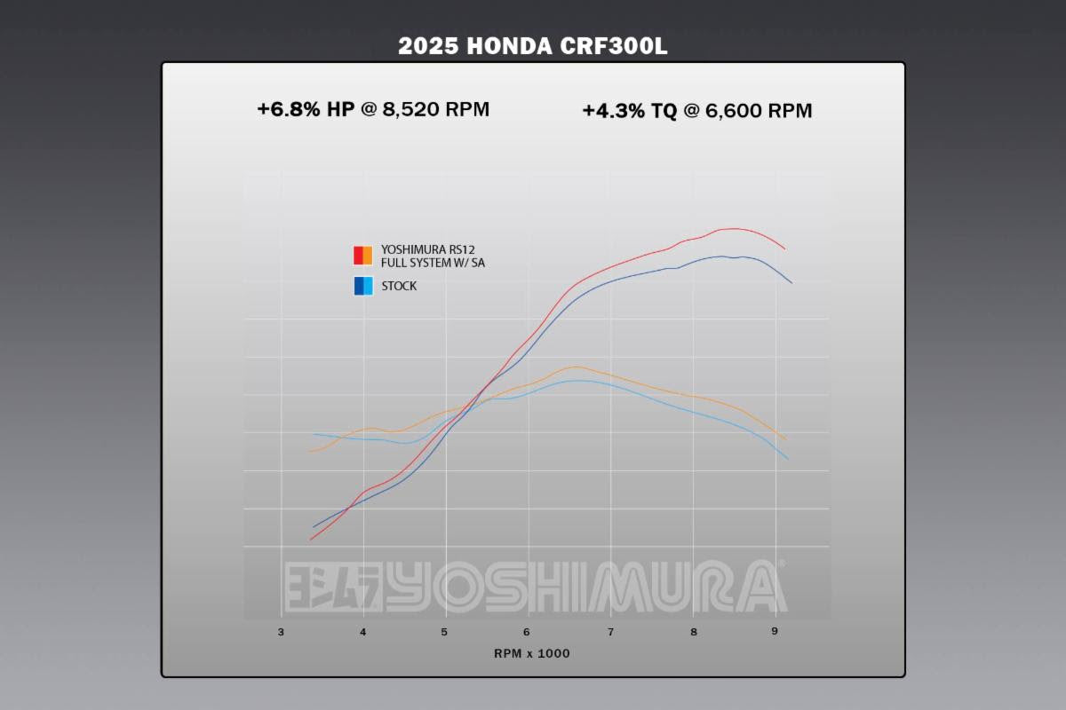 We didn't just build an exhaust; we crafted a revolution. Starting with the CRF300L/Rally's capable 286cc single, our RS-12 unlocks hidden potential with a Yoshimura exhaust note that pleases the ear with weight reduction and dyno-proven results that everyone can enjoy.