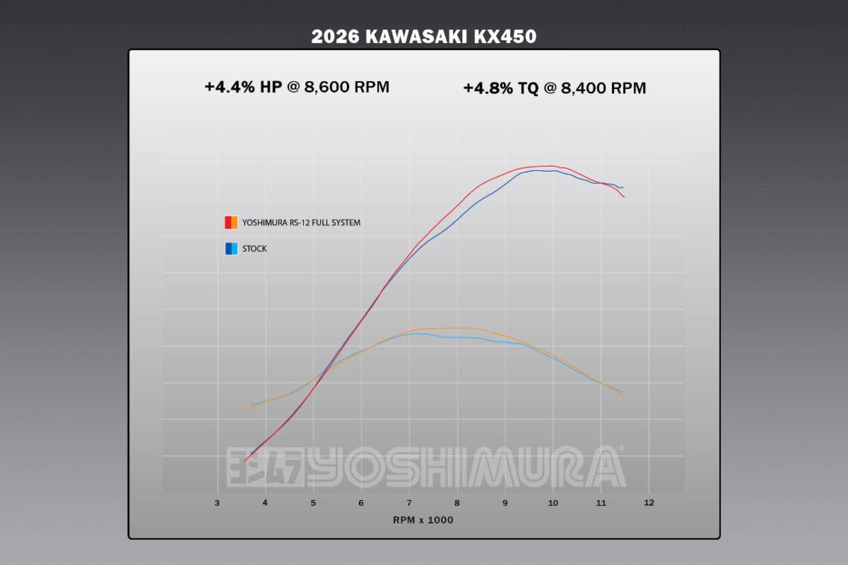 The refined power on the KX450 now produces up to 4.4% of HP @8,600rpm and up to 4.8% of torque @8,400rpm. No wonder this machine is pulling holeshots now!