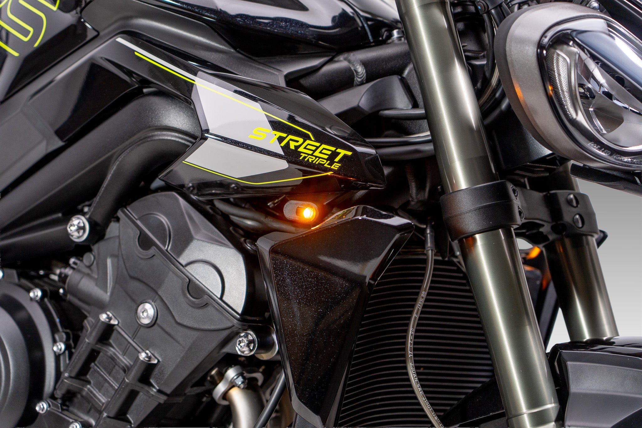 Yoshimura’s new Micro Signal Kit is a custom made kit that comes with everything you need to install our FRONT Micro Lights on your Triumph Street Triple 765.